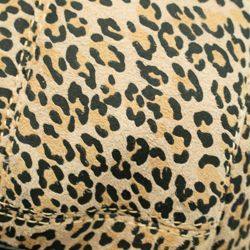 クラウン部分には、オリジナルで制作したレオパード柄のゴートスエードを採用。