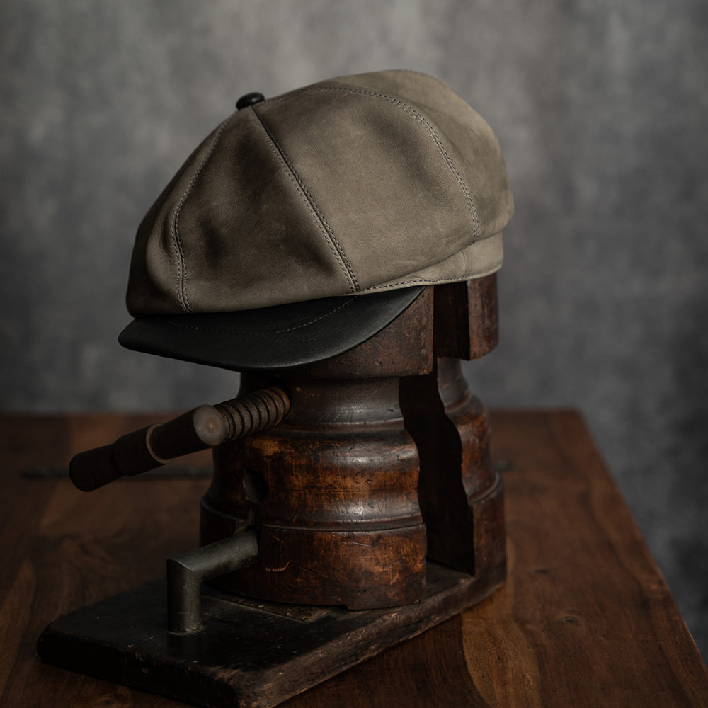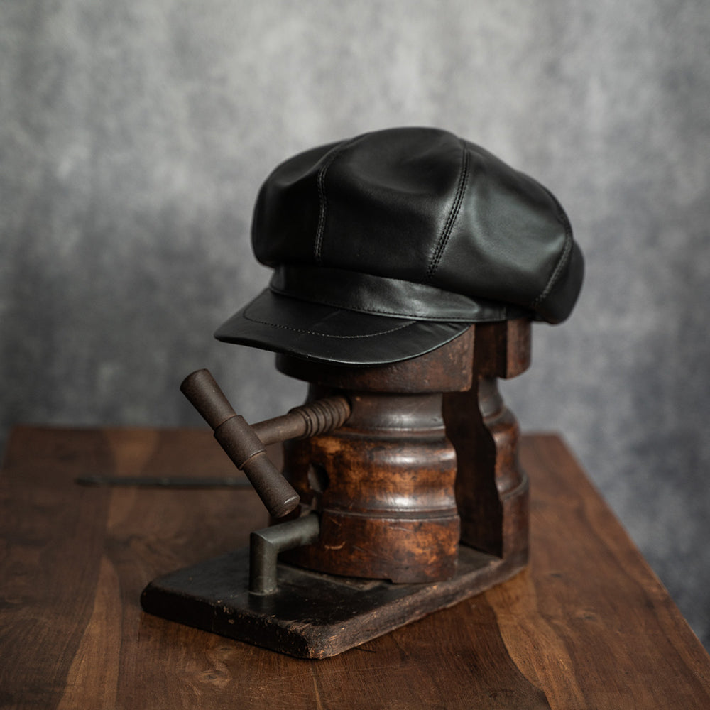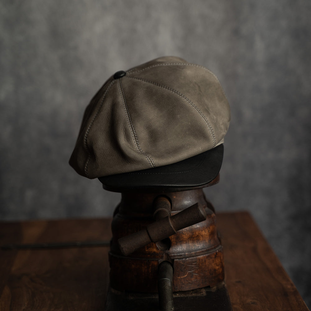 クラウンは伝統的な8枚パネル構造を採用し、下部には帯状のレザーベルトを配したクラシックなデザインのキャスケット。
