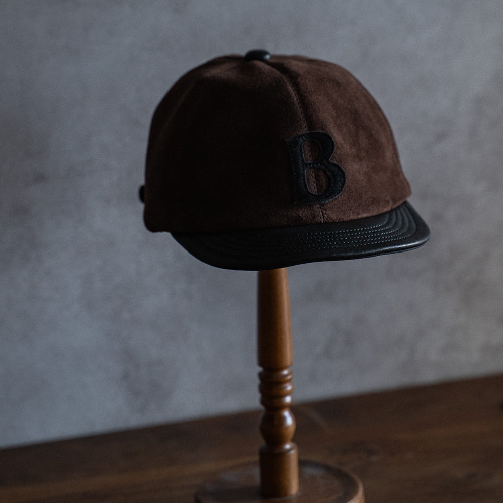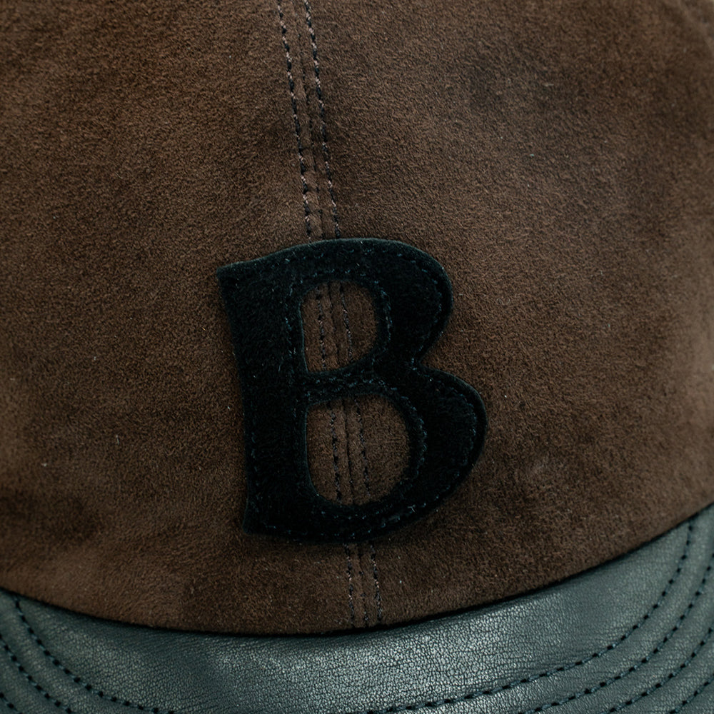 フロントにはブランドの頭文字のBをディアスエードで施し、ブリムは約4.8cmと短くデザインされているため後ろ被りにも向いています。